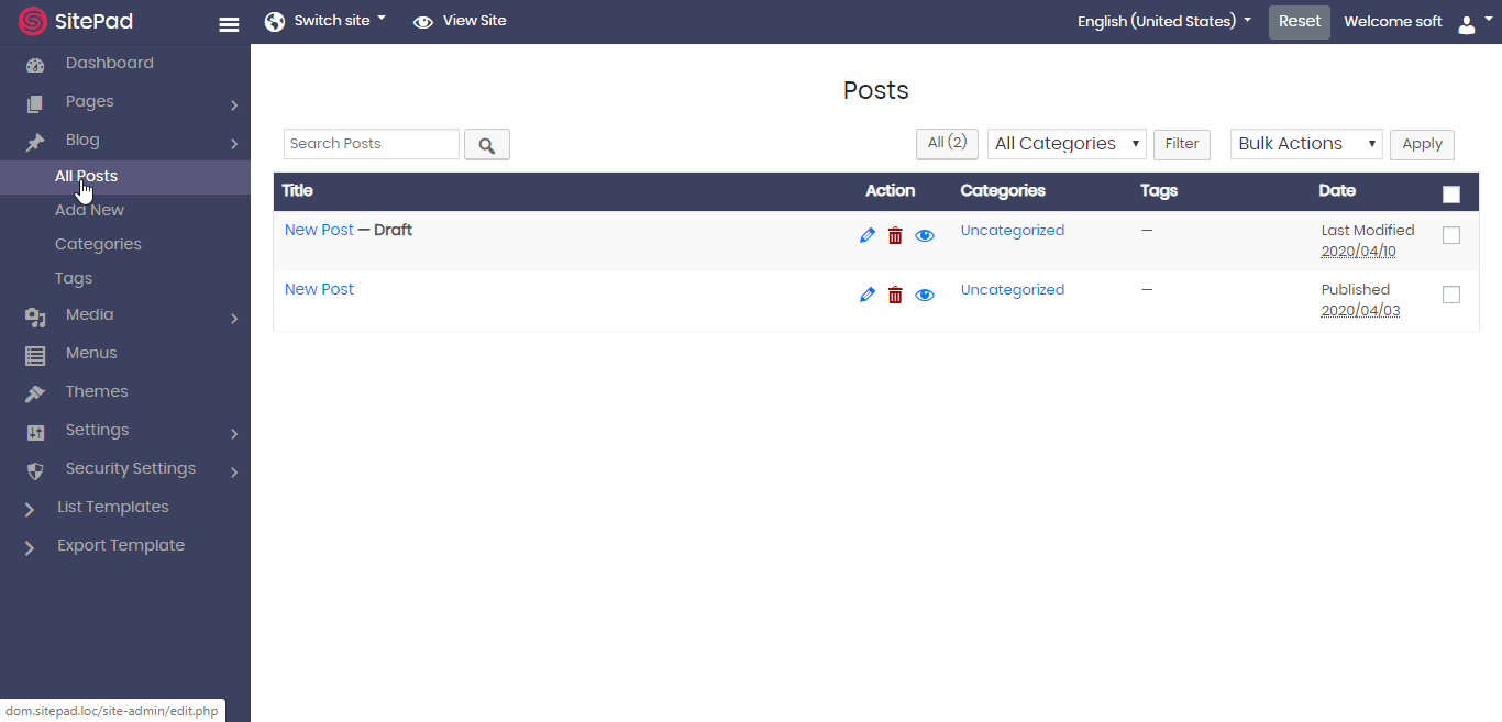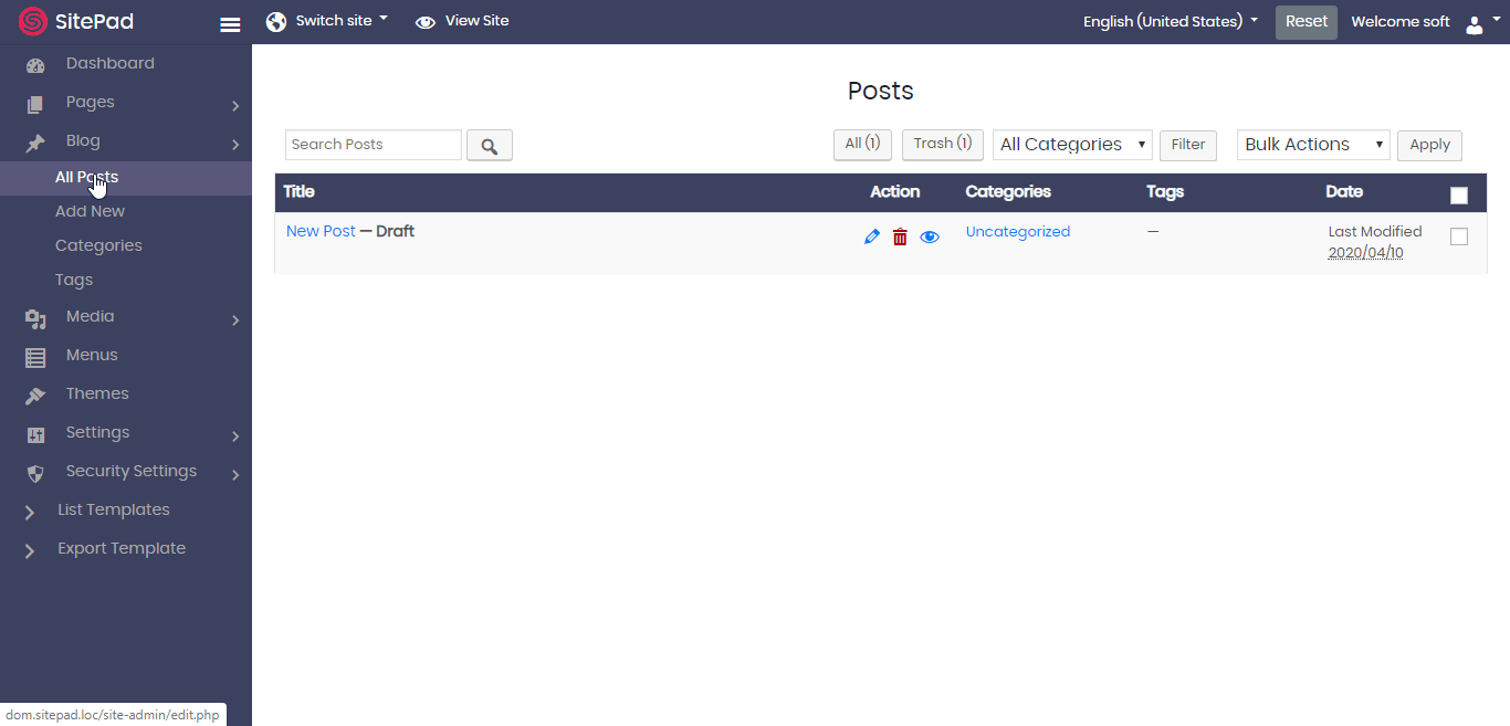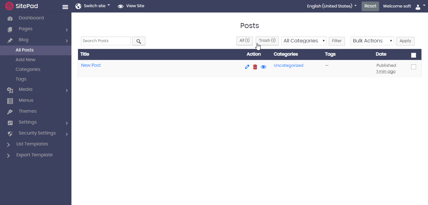 Once the post has been sent to the trash it will stay there till you don’t delete it permanently. You can also restore the post from the trash. To delete it permanently click on the Trash button you see in the Blog -> All Posts wizard. You can multi-select the posts to delete or delete a post singly or just empty the trash as well. Refer to the following screenshot on how to do so :