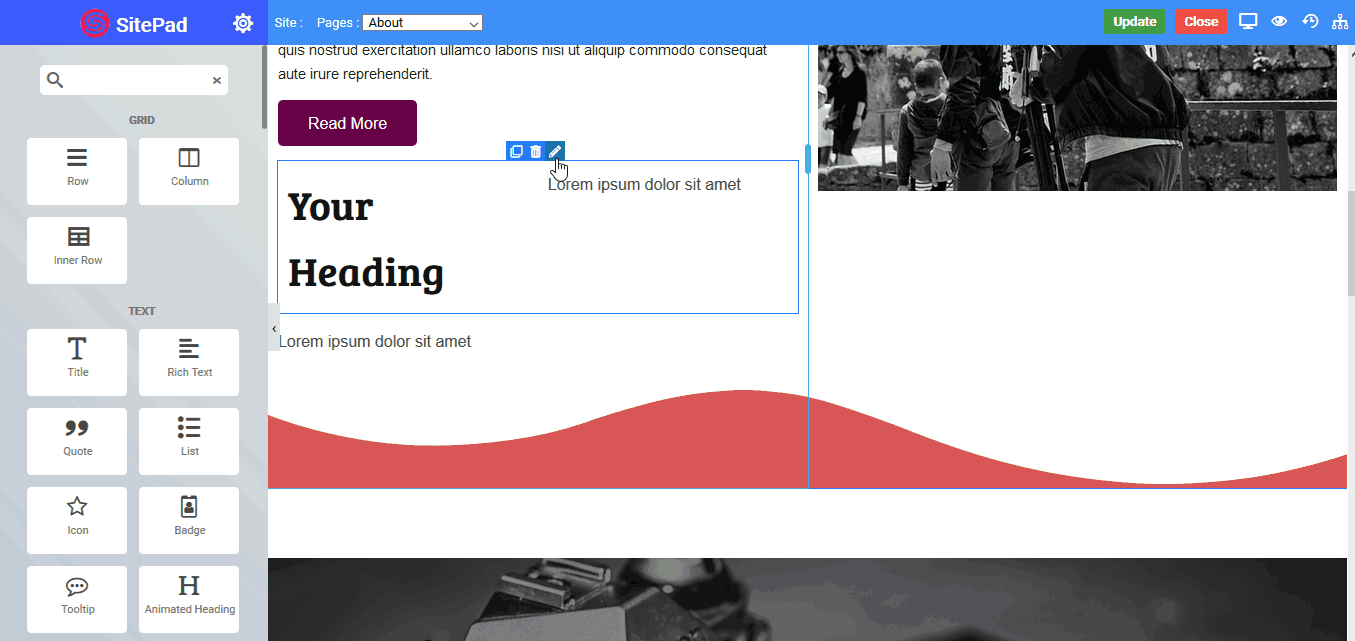 Columns Widget are an extremely important part of the page building process. They are containers that allow you to place any element, widget or content inside of them.