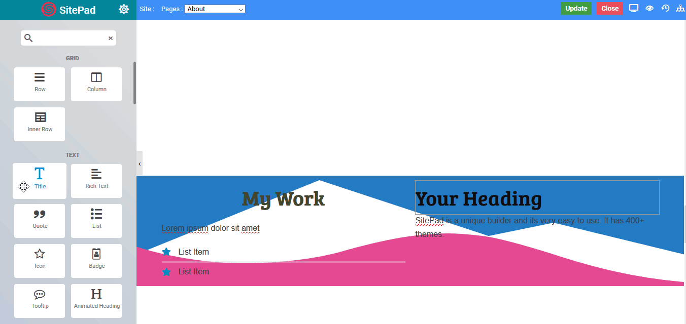 The Title Widget is used to create stylish title headers for your page.